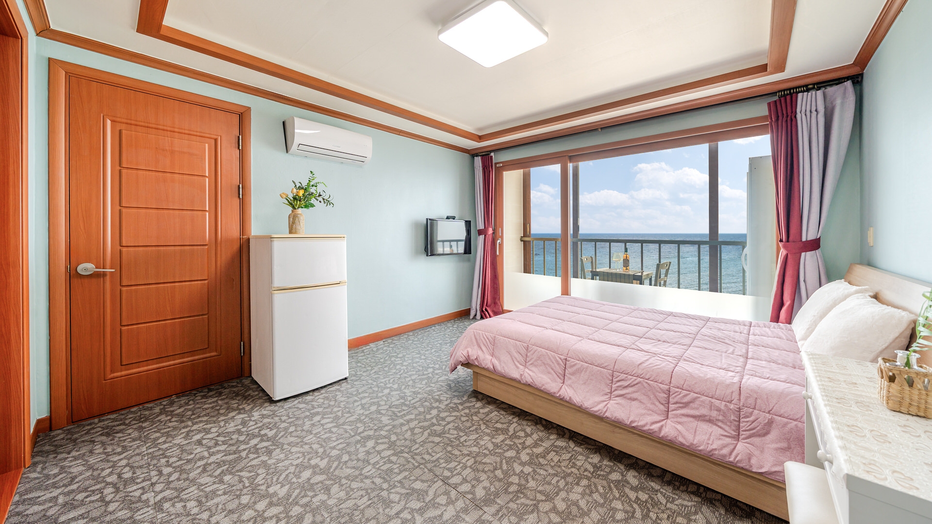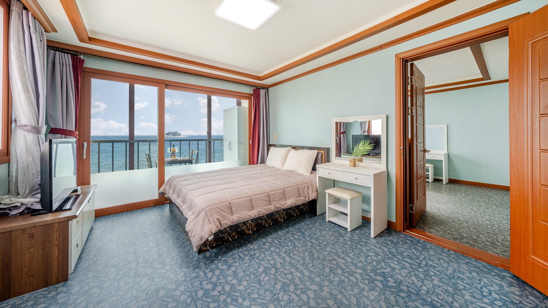- 집기품목 : 욕실용품, 남녀공용, TV, 금연, 냉장고, 에어컨, 전기밥솥, 취사시설/도구, 커피포트, 드라이기, 식탁, 화장대, 샴푸, 린스, 바디워시, 비누, 타월, 와이파이, 가스레인지, 바다전망